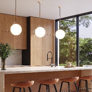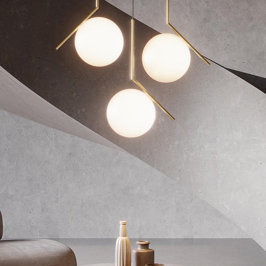 マイケル・アナスタシアデスがデザインしたIC LIGHT。ガラスの球体と細く傾いた棒が絶妙なバランスで組み合わせられたデザインです。