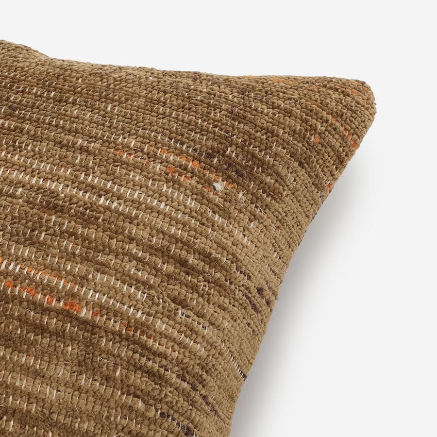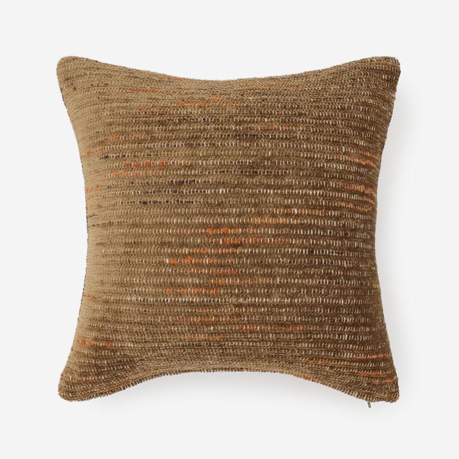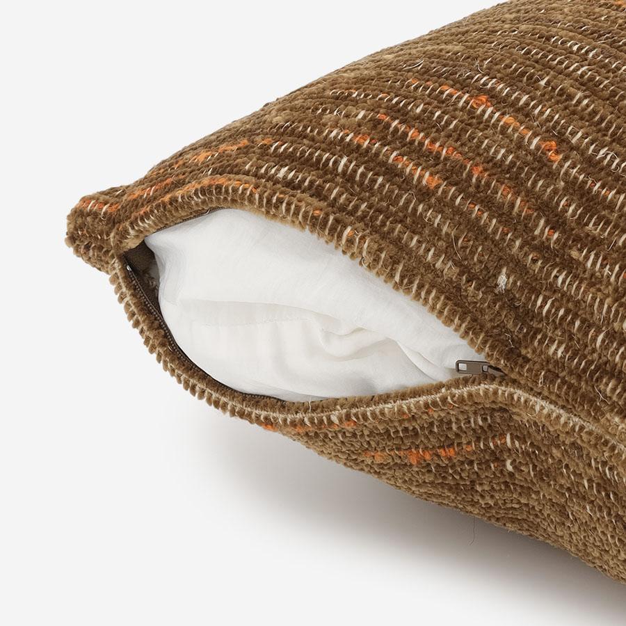 織りと色で絶妙な加減で表現された、主張しすぎないボーダーデザインのクッションカバー。