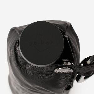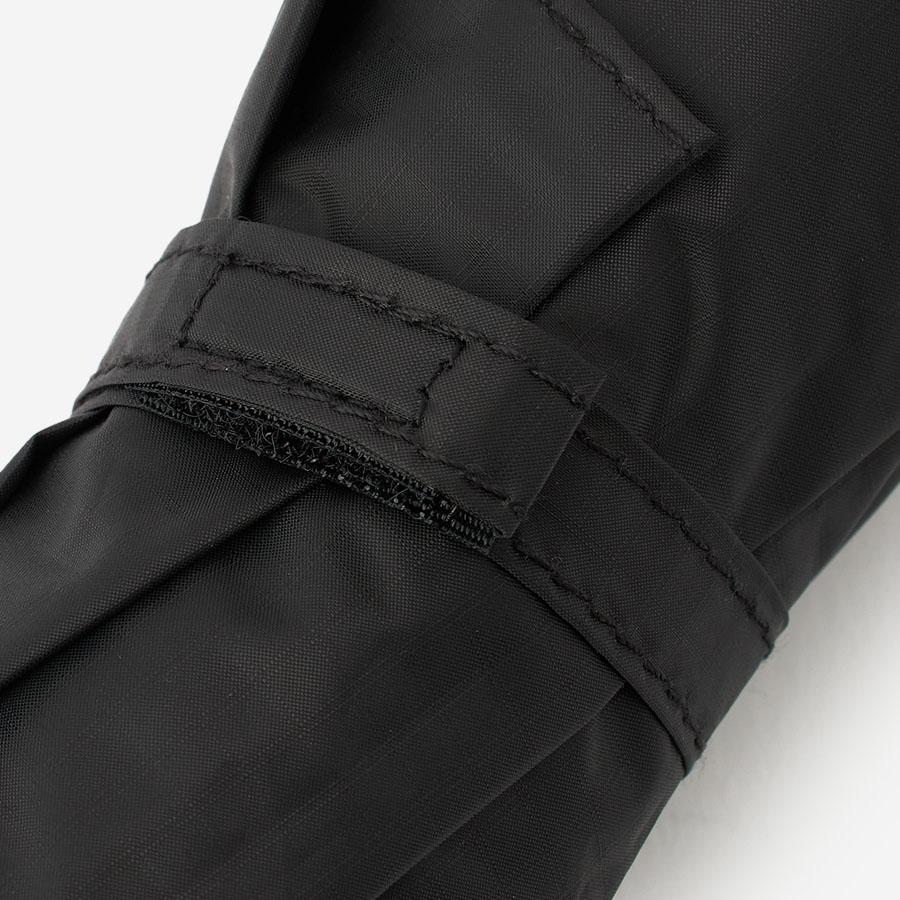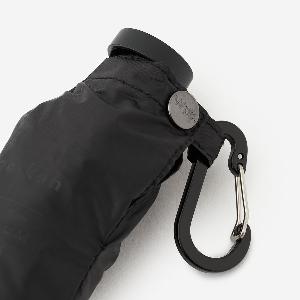 ブラックで統一されたシンプルでスタイリッシュなデザイン。ロゴもさりげなくブラックで配し、スマートさを追求しました。収納袋はスリット入りで出し入れしやすく、カラビナ付きで濡れた傘をバッグの外に掛けて持ち運べる実用性も兼ね備えています。