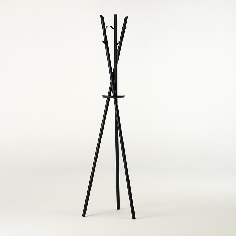 コートスタンドは、交差する丸棒をデザインの基調とした、ネイティブアメリカンのテント小屋の骨組みから発想を得たデザインが特徴です。