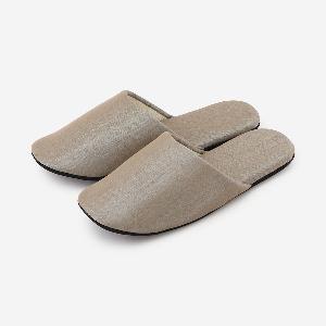 さらりとしたシャリ感とほどよい光沢が特徴の無地スリッパ。