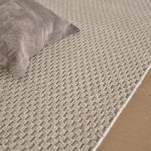 最高品質の手紡ぎウール糸を使用し、糸をツイストさせる精巧な織り技法により織り上げられたしっかりとした踏み心地のラグ。