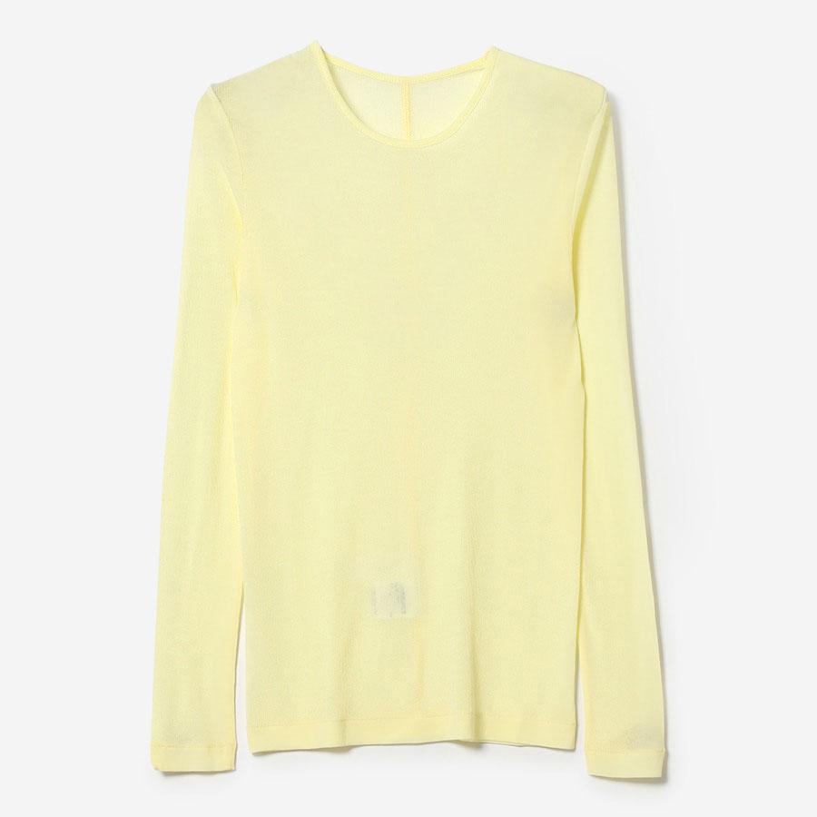 細くて軽い糸で編み上げたシフォンのように ほどよくシアー感のある素材のトップス。