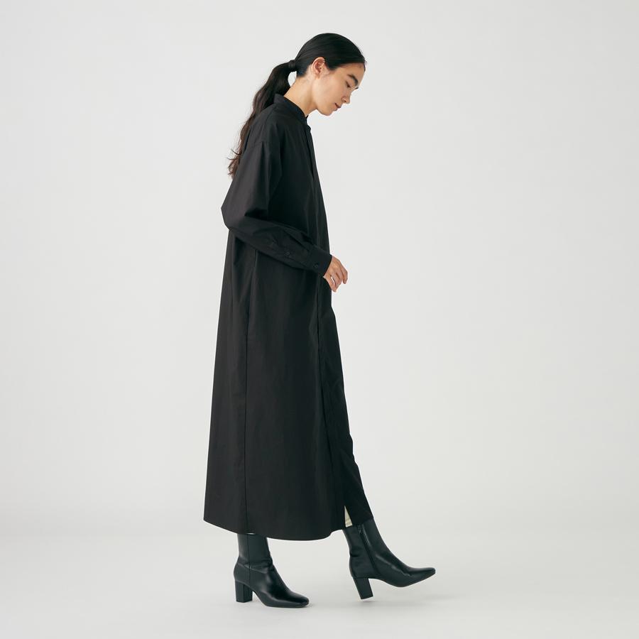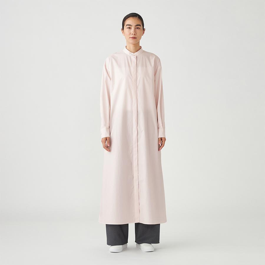 シンプルなデザインのシャツワンピース。