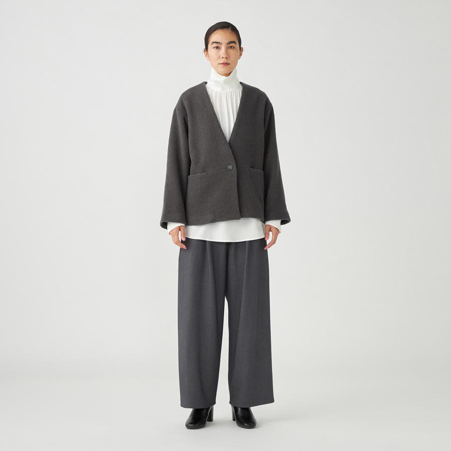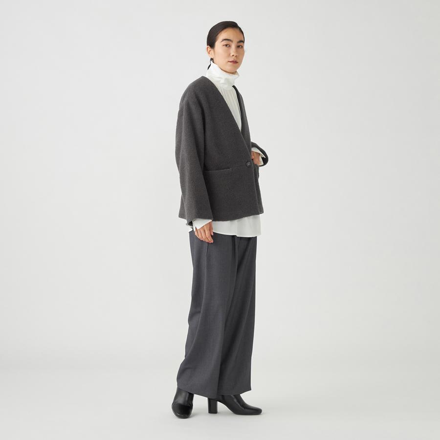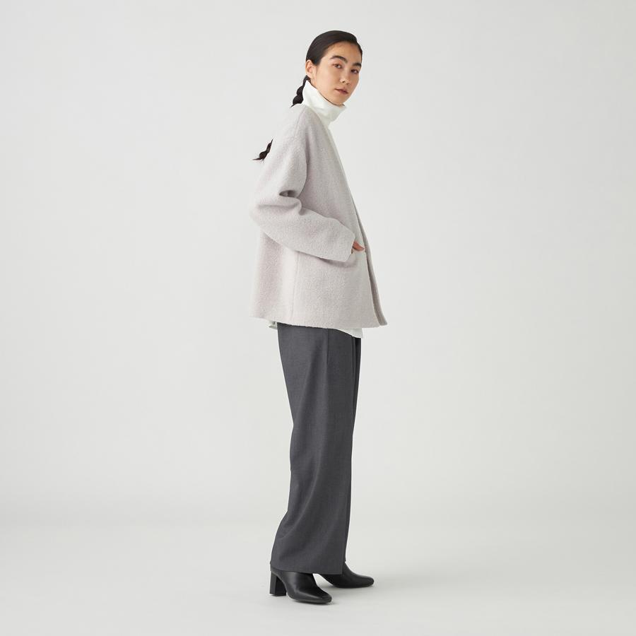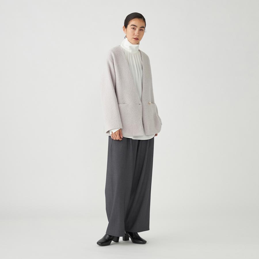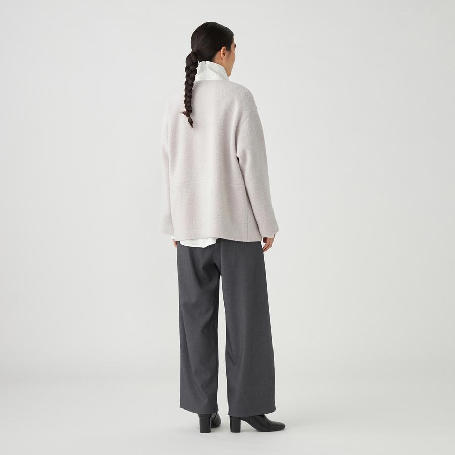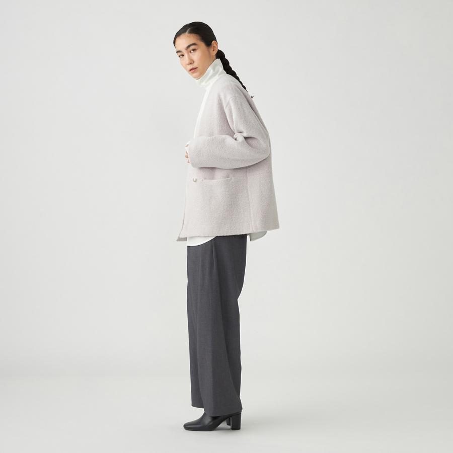 ポケットや釦ホールは目立たない様に仕立て、ループ状のテクスチャーが際立つ様にデザインされたアイテムです。