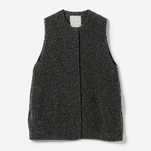 ミニマルなジレ。ポケットや釦は表から見えない様に仕立て、ループ状のテクスチャーが際立つ様にデザインされたアイテムです。
