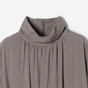 とろみのある素材感とギャザー使いで上品な雰囲気を醸し出します。