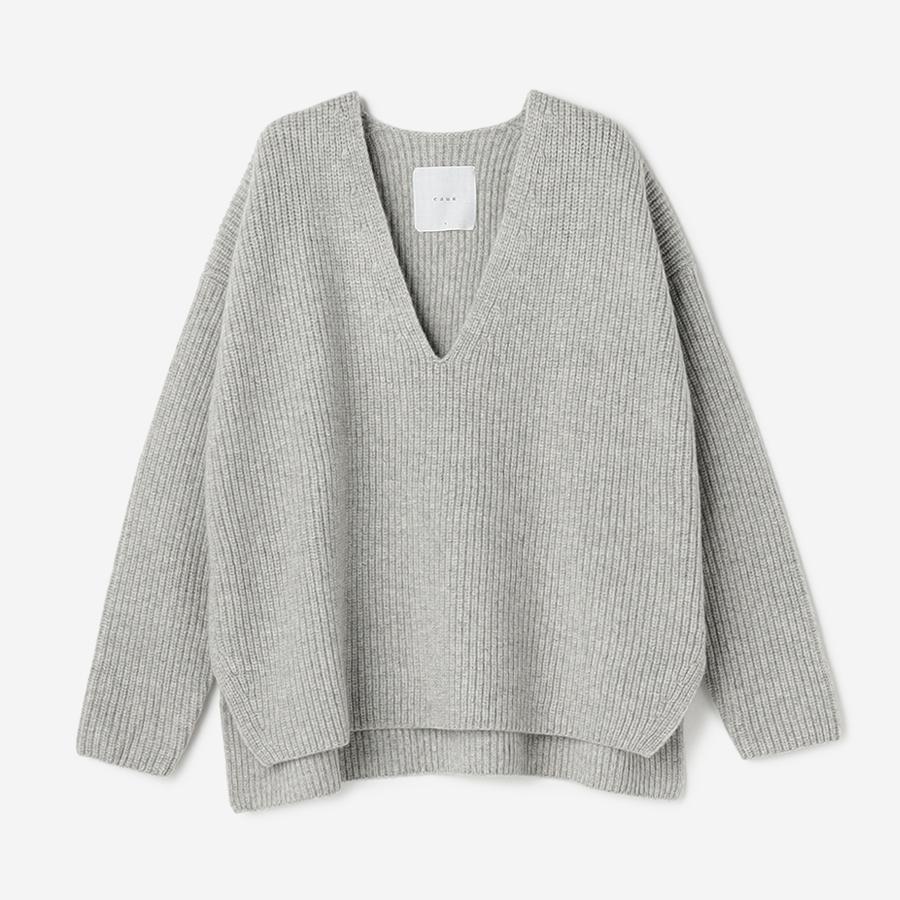 オーバーサイズのニットトップス。前後の着丈に少し差があり、裾にはスリットがあるので腰回りをすっきりと見せてくれます。