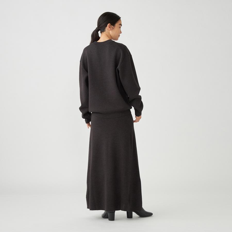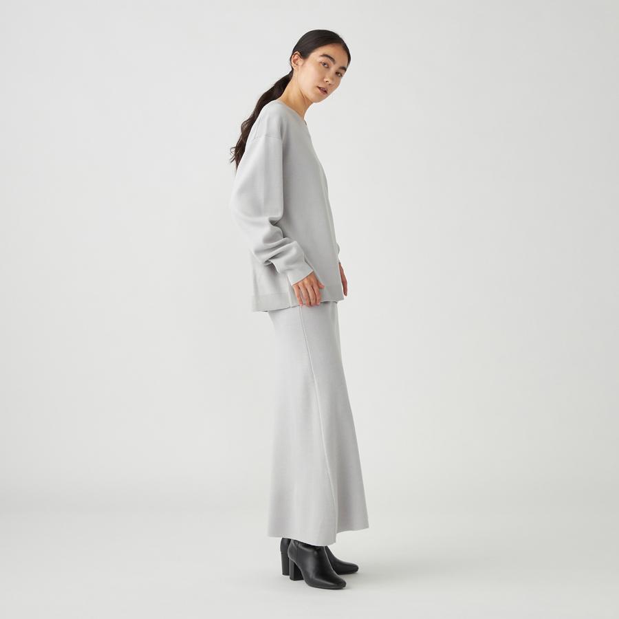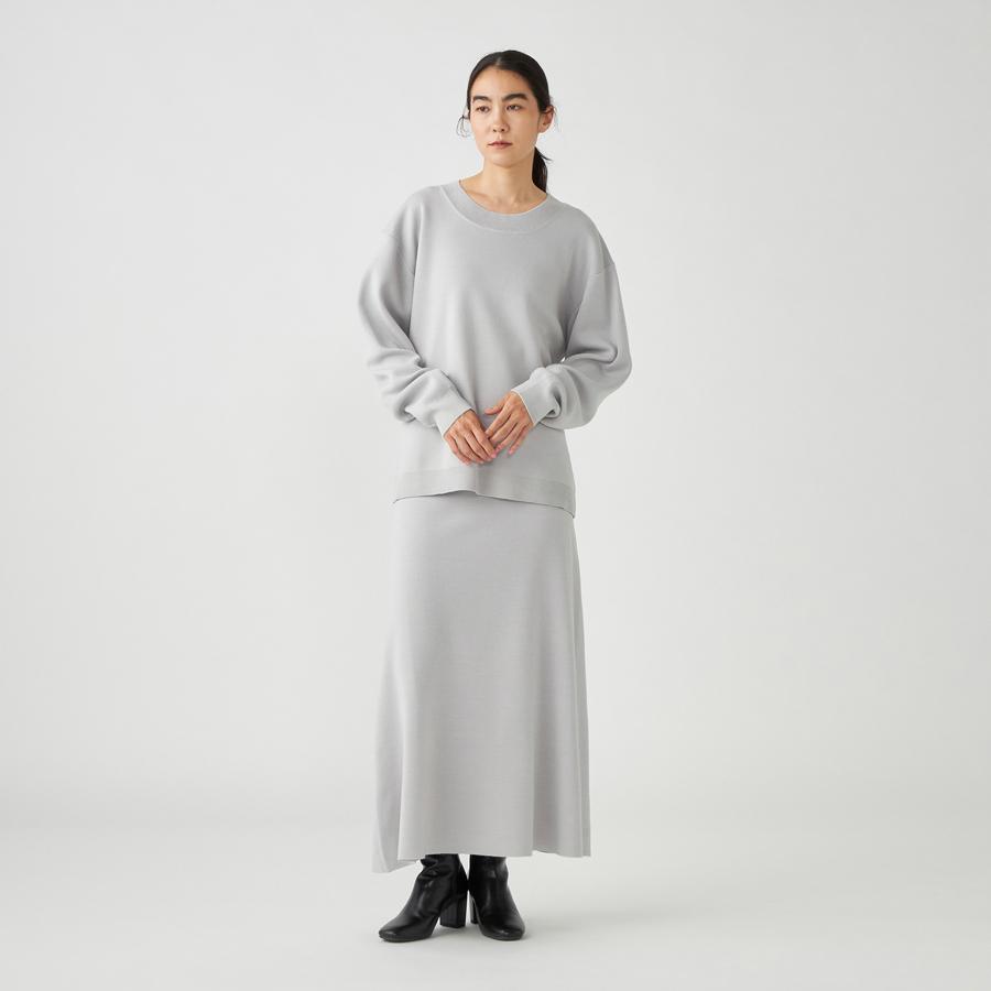 スムース編みという編み方で、スウェットのようなふっくら感もありつつ、シャキッとした風合いが特徴です。