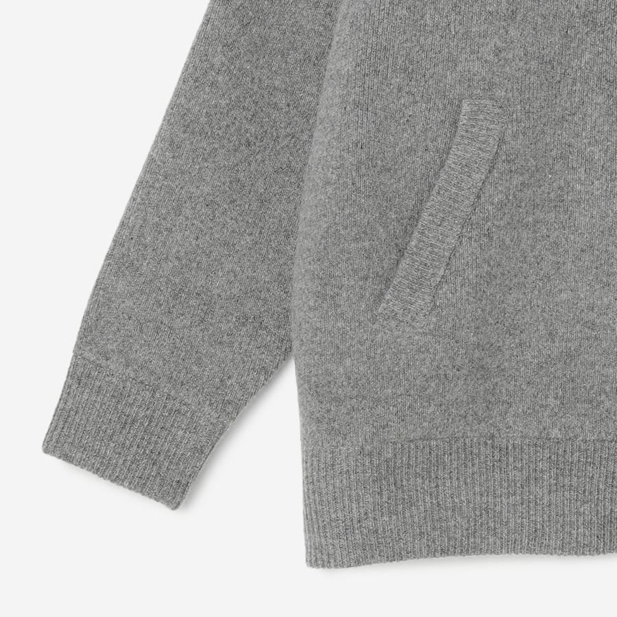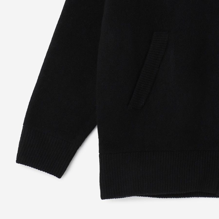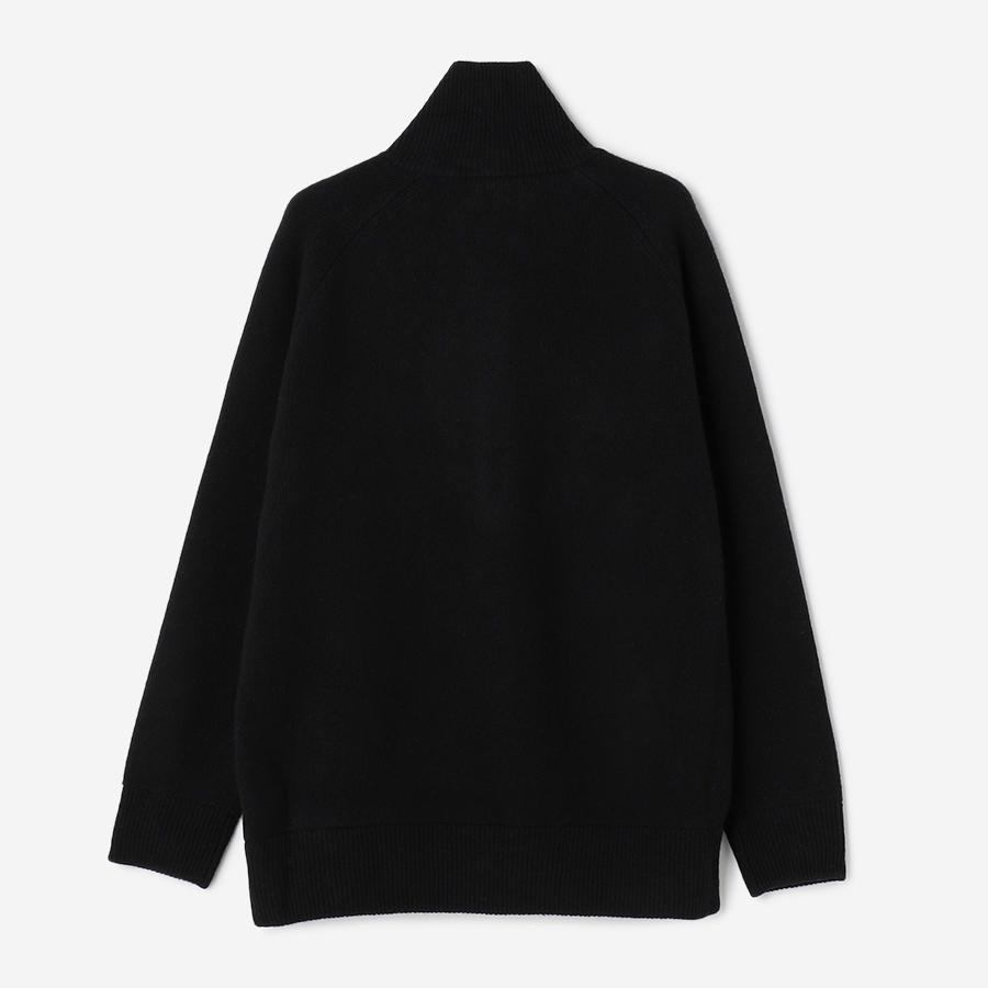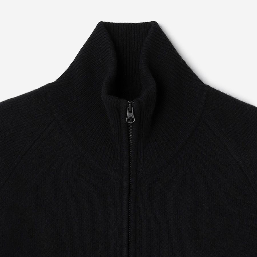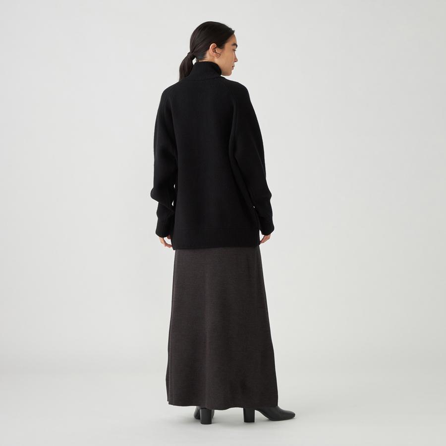 ジップアップのニットアウター。カーディガンとアウターの中間くらいのイメージでお作りしているので長い期間着用いただけます。