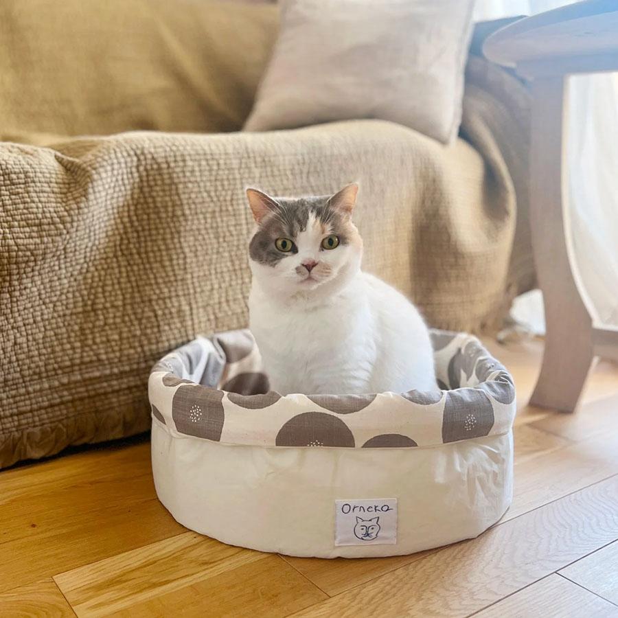 MUDDY WORKS by Tomotakeの「あんパン柄」 が映えるネコベッド。