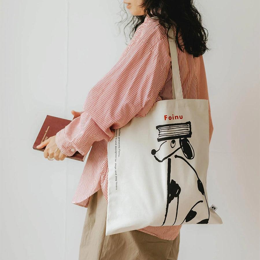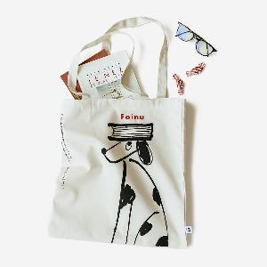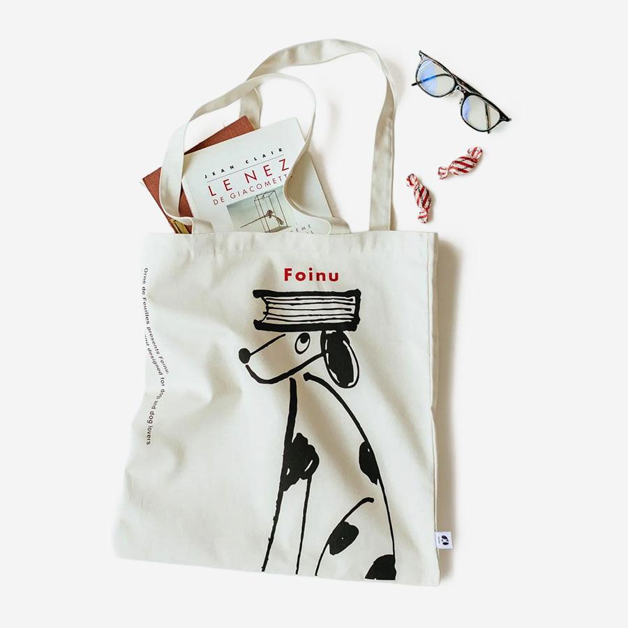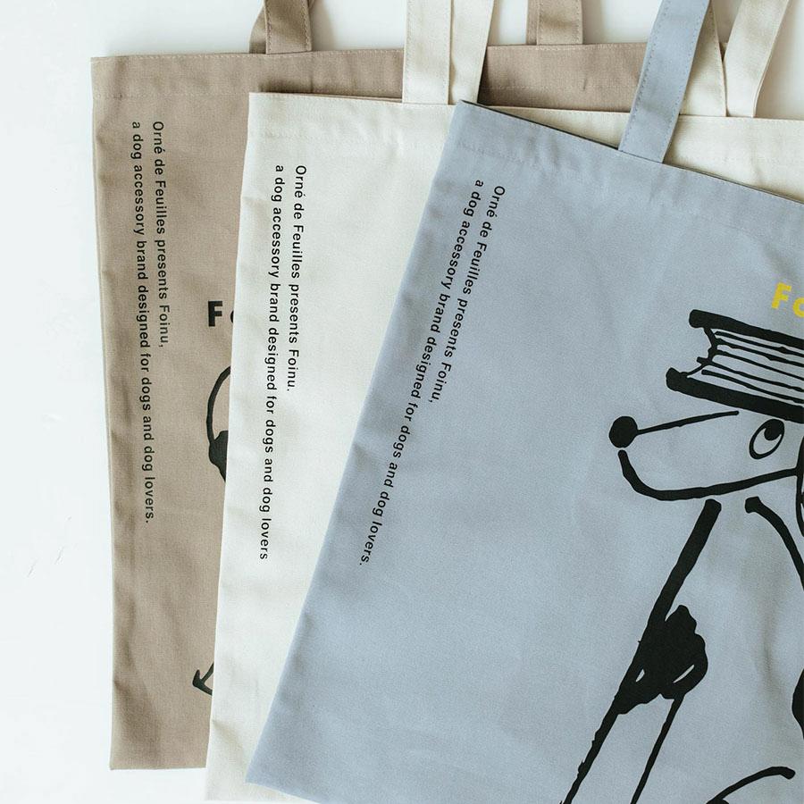 フォイヌのトレードマークになっているワンちゃんのイラストのトートバッグ。