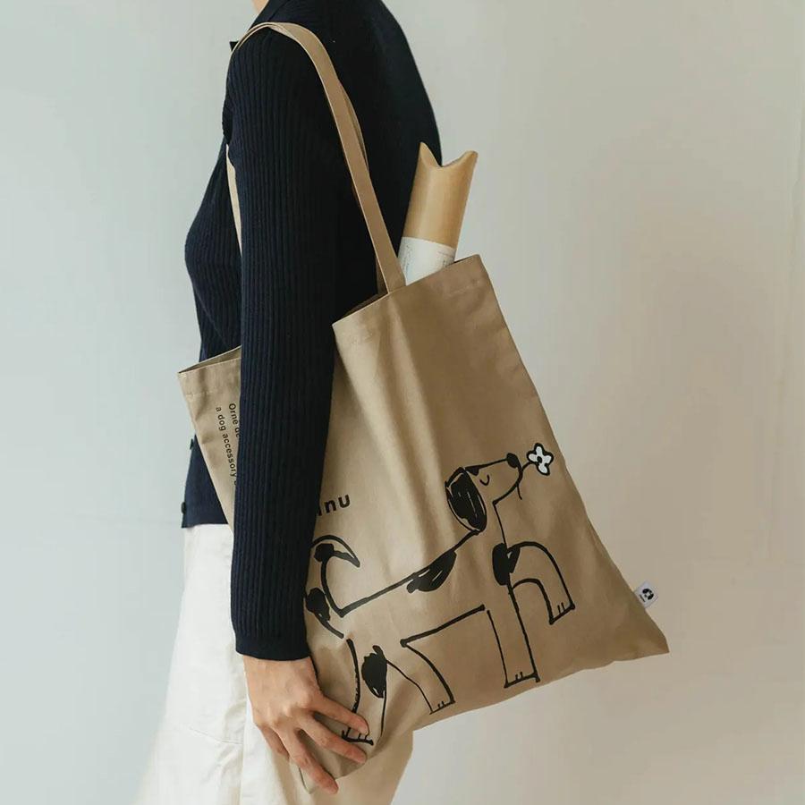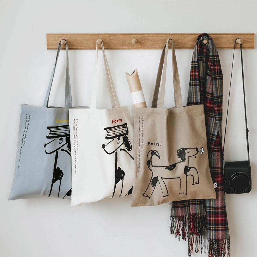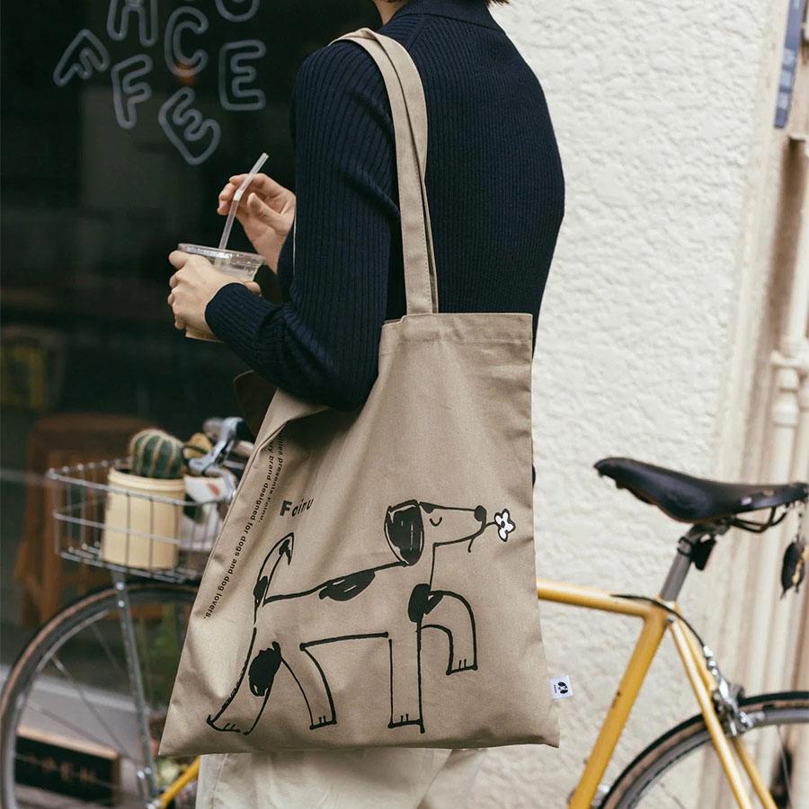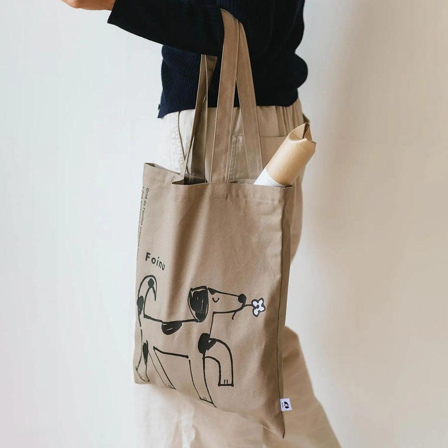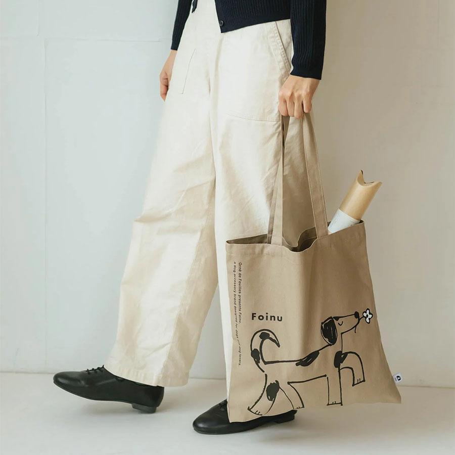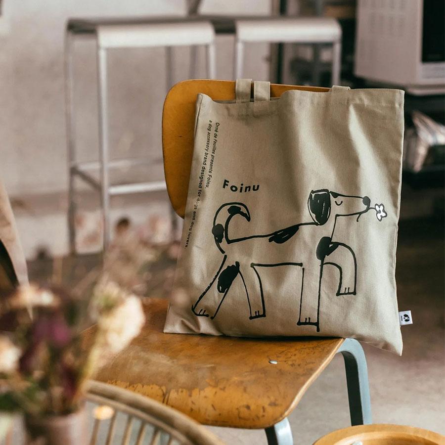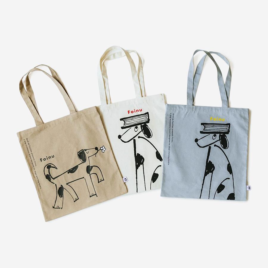 フォイヌのトレードマークになっているワンちゃんのイラストのトートバッグ。