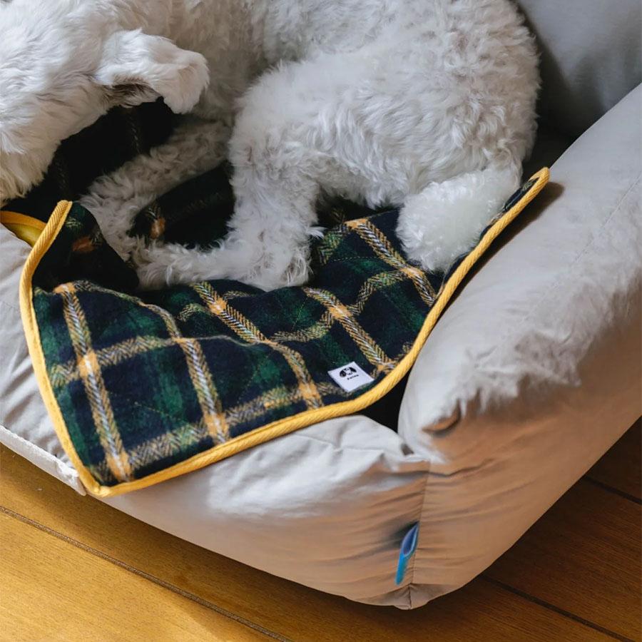 愛犬とのお出かけをもっと素敵に演出する、シックなチェック柄のカフェマット。