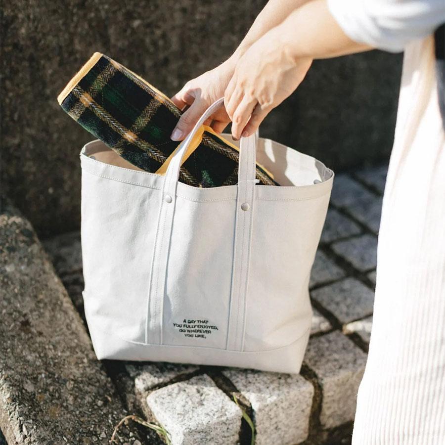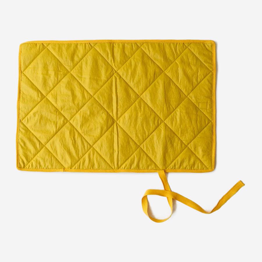 鮮やかなイエローのパイピングがアクセントとなり、使わない時はくるっと丸めて付属の紐でコンパクトにまとめられます。