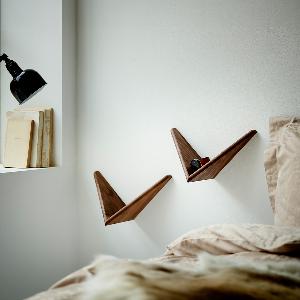 美しい羽を広げた蝶々のように、壁を彩るシェルフ。