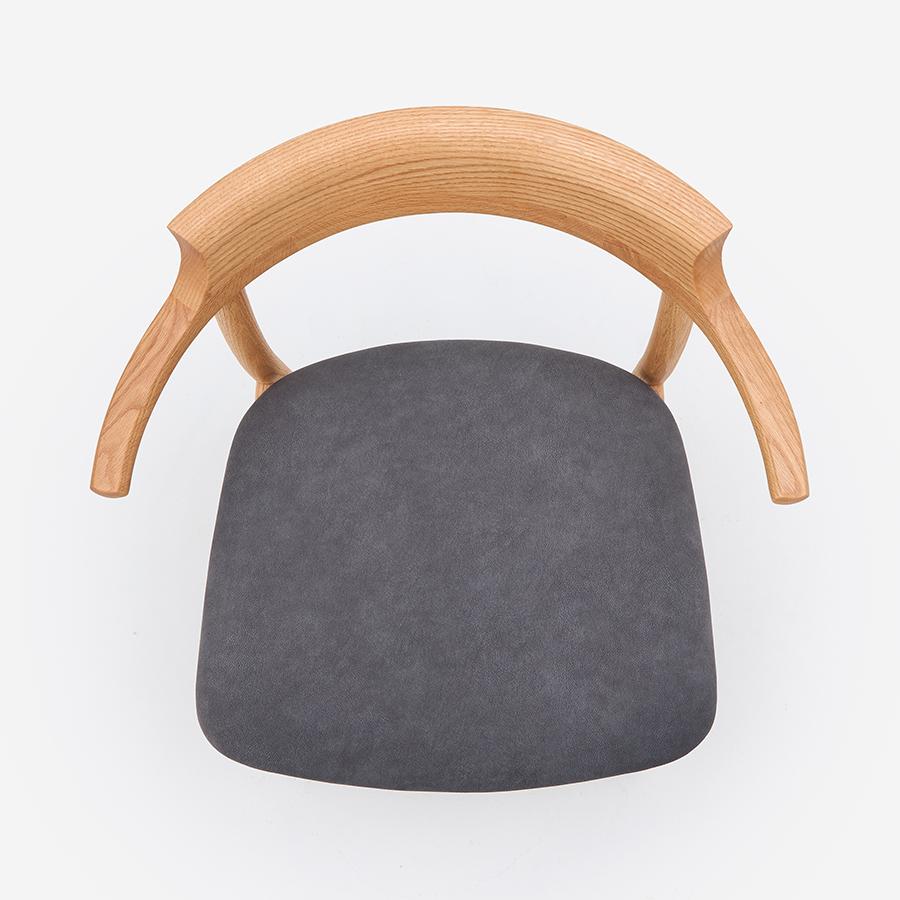 Cタイプ同様にアームと背もたれが一体型ですが、肘掛けがフルにあるためよりホールド感があるDタイプ。馬蹄形のデザインが特徴で、ゆったりとリラックスして着座いただけます。