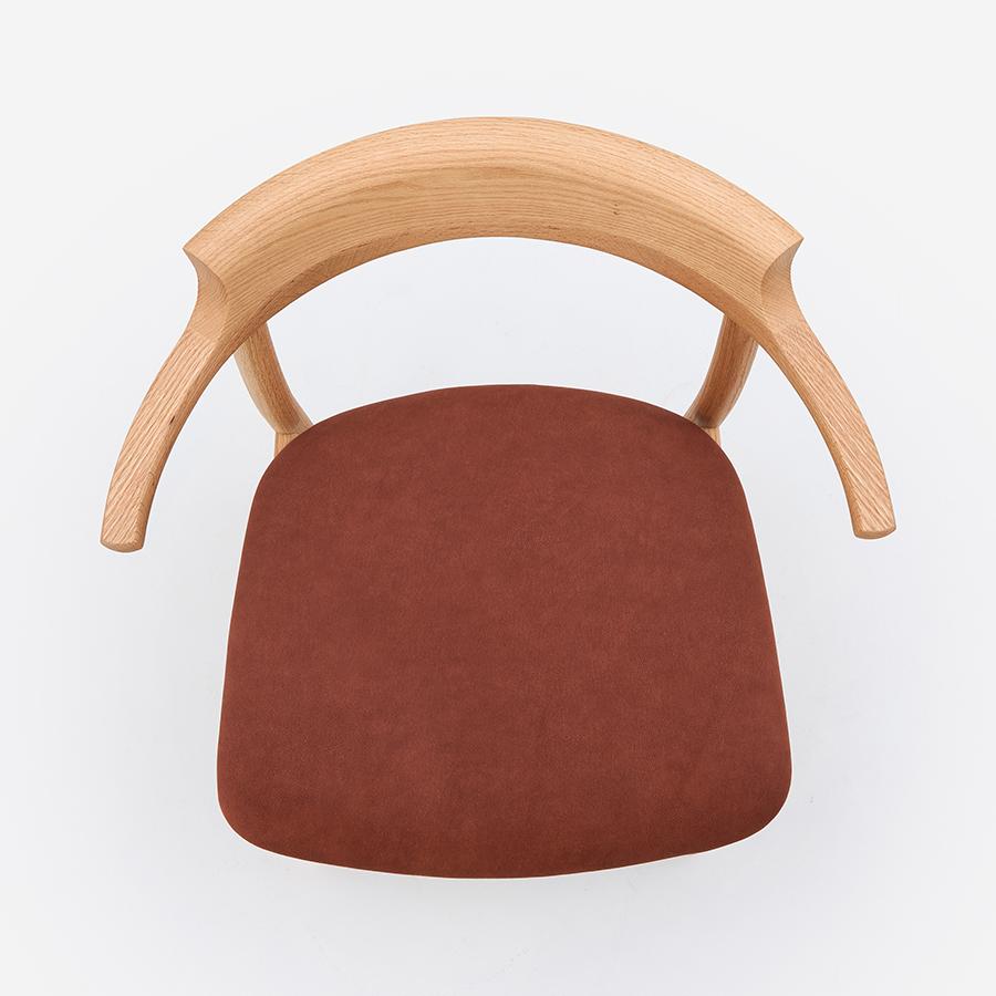 座面は板座か張地をお選びいただけます。張地はファブリック、お手入れのしやすい合成レザー、国内でなめしたレザーの3種類をご用意しています。張地の異なるチェアを組み合わせてもコーディネートしていただきやすいよう、トーンを揃えたカラーバリエーションです。