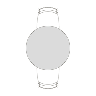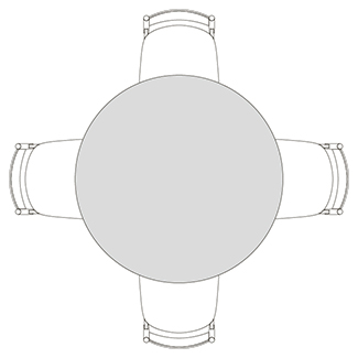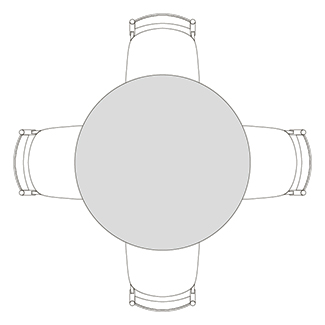 円柱状の脚が4つ角に配置された、Rレッグタイプ。シンプルで脚間が広く、使いやすいデザインです。ラウンドテーブルはRレッグのみ指定できます。