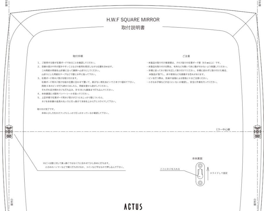 壁へのダメージを抑えながら付属の説明書型紙を用いてご自身で取り付けることができます。