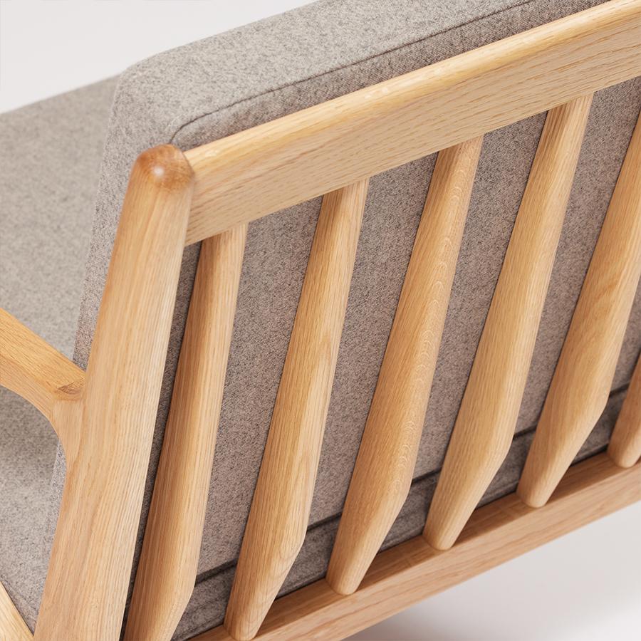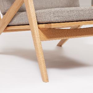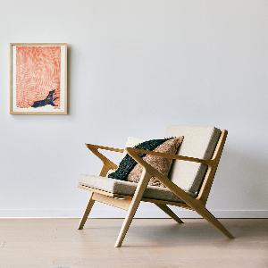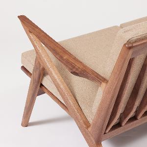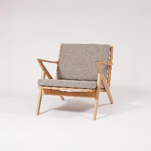 Zチェアは、1957年にポール・ソアビャウ・イェンセンによってデザインされ、彼のアーカイブの中から2025年にDK3によって復刻されました。シンプルで直線的な印象を持ちながらも、やわらかい自然の造形美を感じさせる、親しみやすさを両立させたデザインが魅力です。アームのわずかな立ち上がりや座面の傾斜など、職人だからこそ実現した細部へのこだわりが感じられます。座った時に落ち着くよう、全体的に低いデザインも特徴のひとつです。快適な座り心地で、デザイン性だけでなく機能性にも優れ、ゆったりくつろぐことができるチェアです。