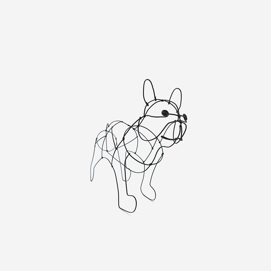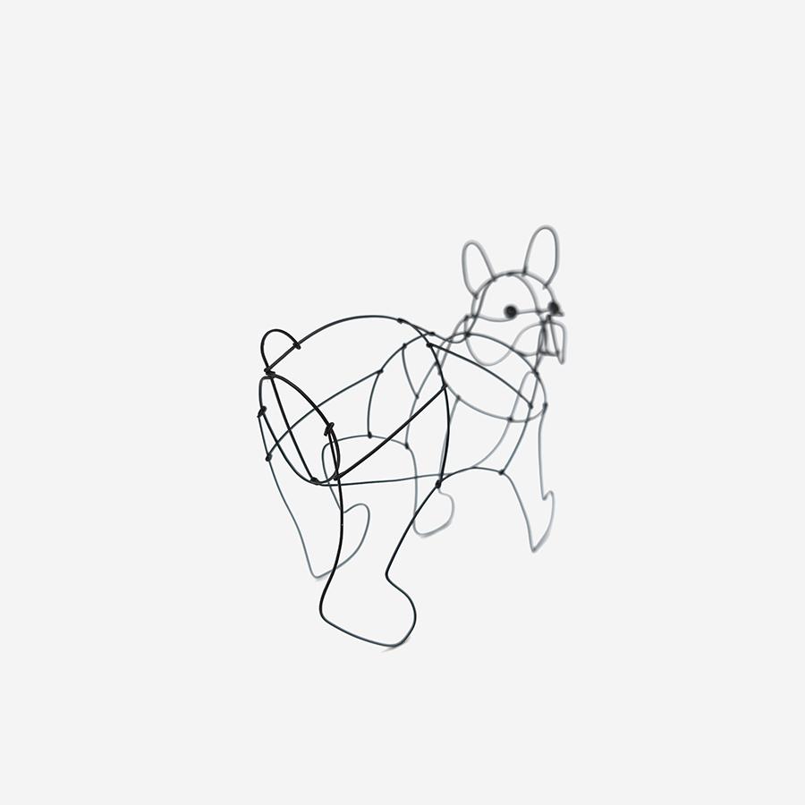 まるでいたずら書きのような自由な線が、愛嬌たっぷりのフレンチブルドッグのシルエットを繊細なワイヤーで立体的に表現しています。