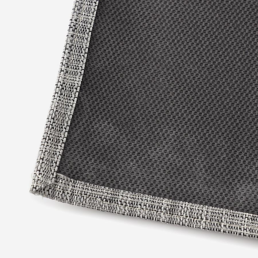 ■ 水分を溢した場合、糸自体は液体を吸収しませんが、織物のため液体はラテックス部分に染み込みます。中性洗剤&水でしっかり洗い流してください。両面に布巾を当て、表面から水分を押し出し、陰干ししてください。
