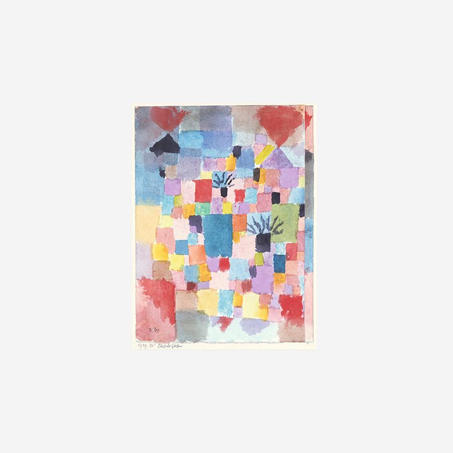 絵は抽象的でありながら異国的な庭園を思い起こさせ、クレーの特有の色彩実験と創意工夫が際立っています。