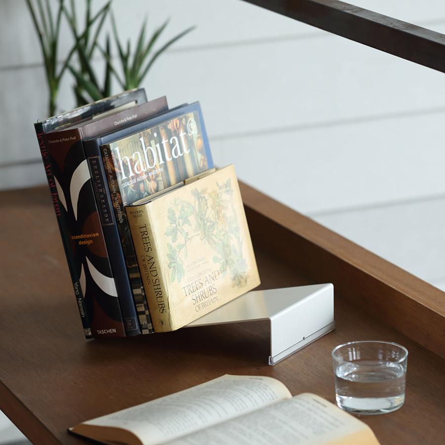 単に本を整理する道具としてだけでなく、読みかけの本や大切なお気に入りの一冊のための「特別な居場所」としてデザインされました。