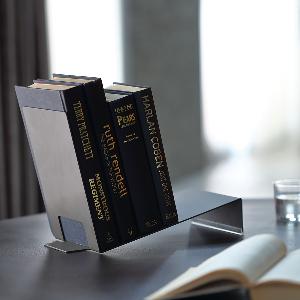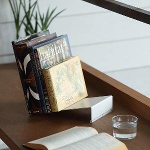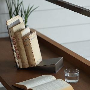 背もたれと底面が90°の角度を保ったまま斜めになっているため、本が自然と背もたれに寄りかかり、ブックエンドを使わなくても倒れることなく美しく整列します。