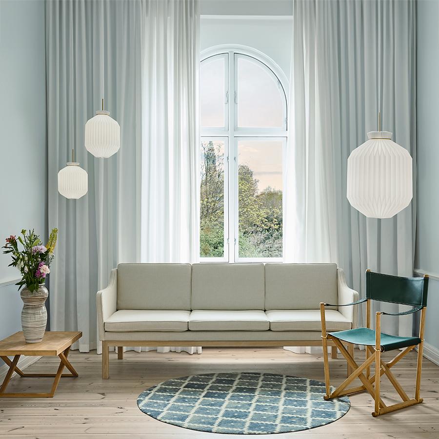 1901年デンマークの建築家P.V.イェンセン・クリントが日本の折り紙をヒントにオイルランプのあかりを調節するためのシェードが始まりでした。規則的に続く折りは美しい陰影を生み出し、レ・クリントの原点となっています。長い冬を過ごすデンマークの生活の中で磨かれてきたデザインや伝統の技術は、時代を超えて大切に受け継がれてきました。2003年にはデンマーク王室御用達に選定されるなど格式の高さがある一方で、北欧の一般家庭で愛用される身近なブランドでもあります。創業から変わらぬデンマークにある工房で、職人の手仕事によってつくられた美しいデザインと柔らかなあかりをお届けします。