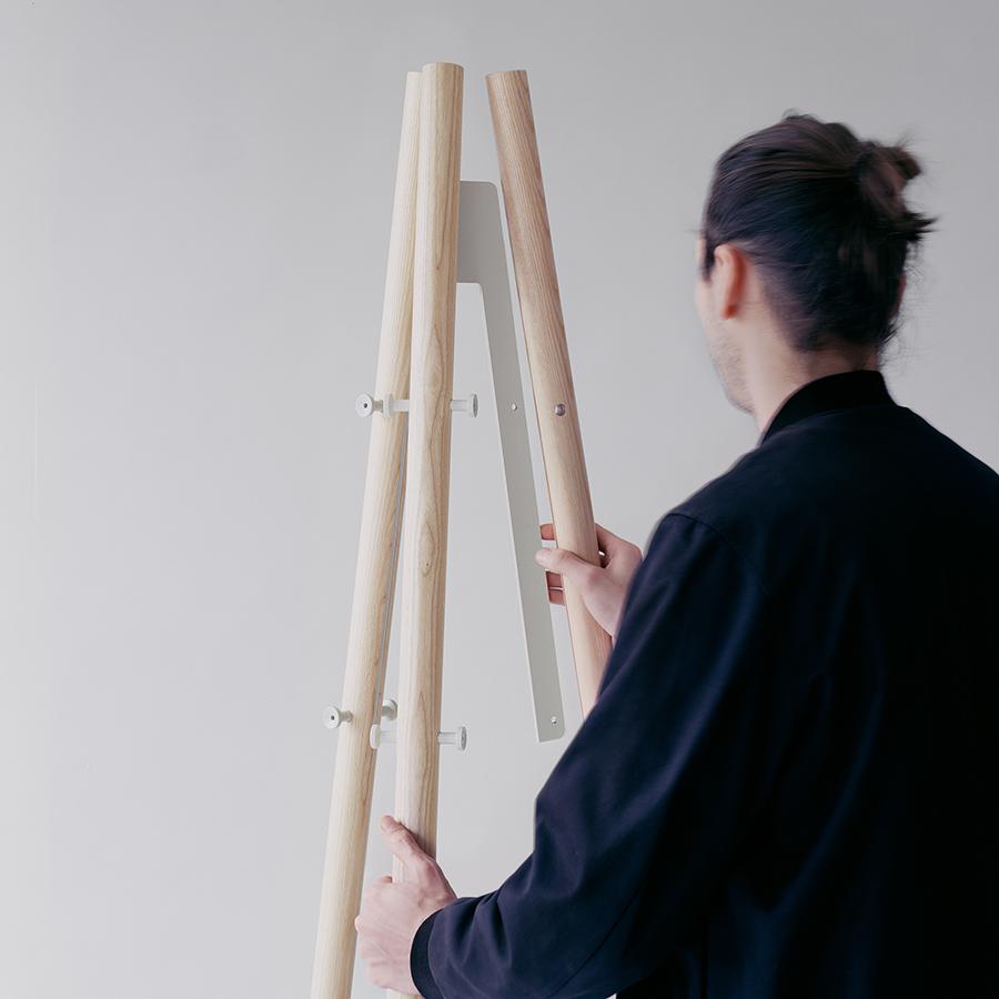デザイナーであるダニエル・リーバッケンは、カメラの三脚にコートを掛けてみた経験からインスピレーションを受け、重心が低く、大きな荷重にも対応する頑丈さと、アルテック製品らしい、あえて部品や構造を隠すことのないスマートなデザインを兼ね備えたコートラックを生み出しました。
