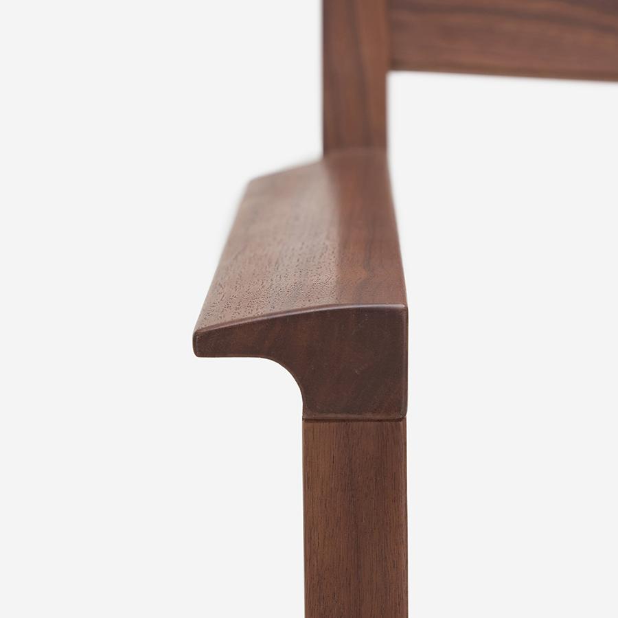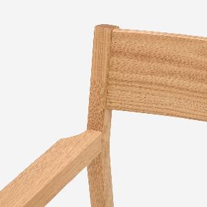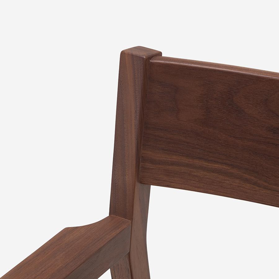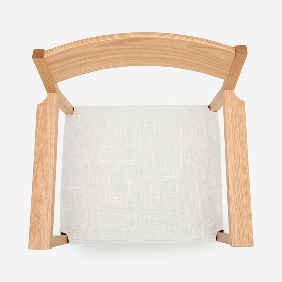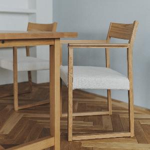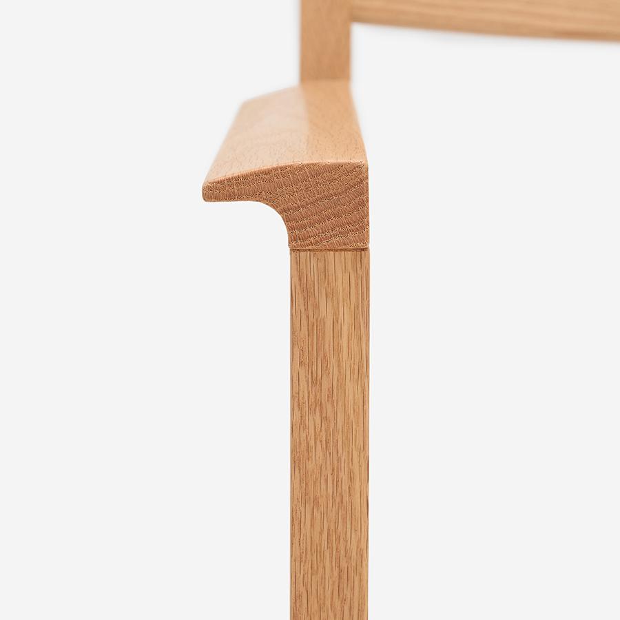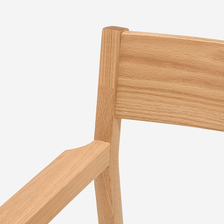 チェアは潔いほどにシンプルな直線で構成しながらも、思わず手を置きたくなる肘掛けの滑らかな曲線にこだわりました。身体に触れる部分は丁寧に削り込み、無垢材ならではの柔らかな感触をお楽しみいただけます。