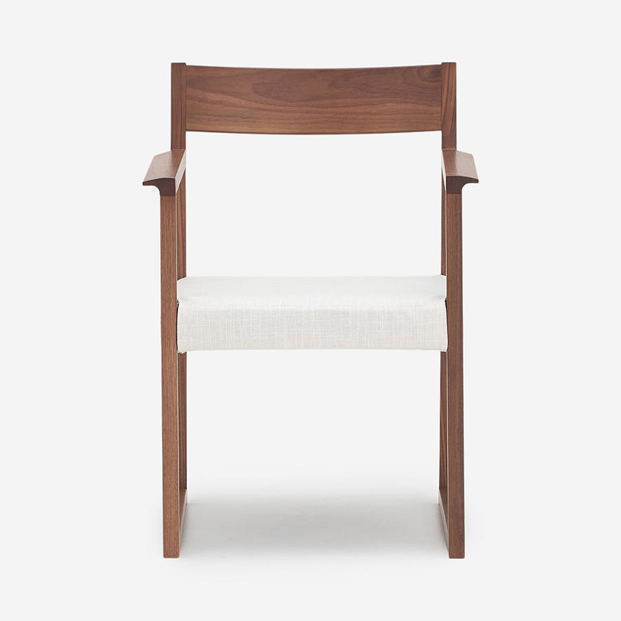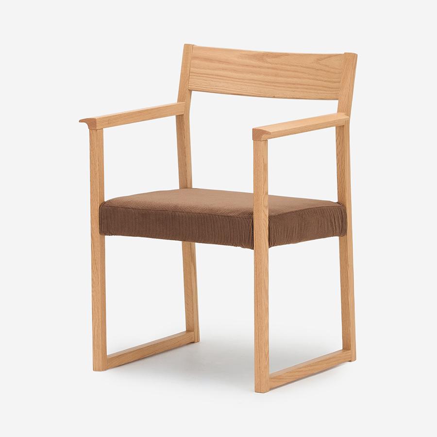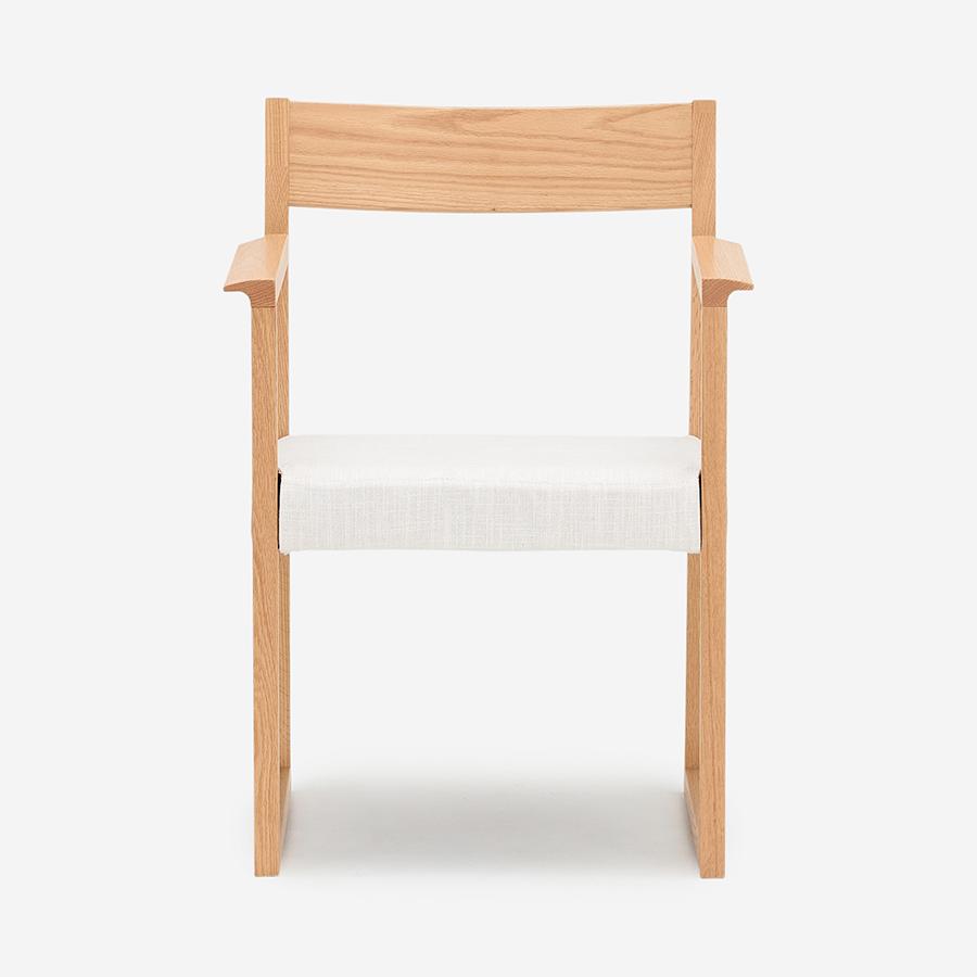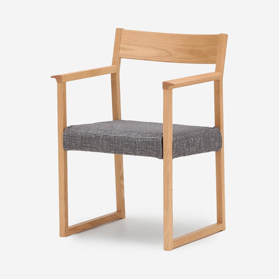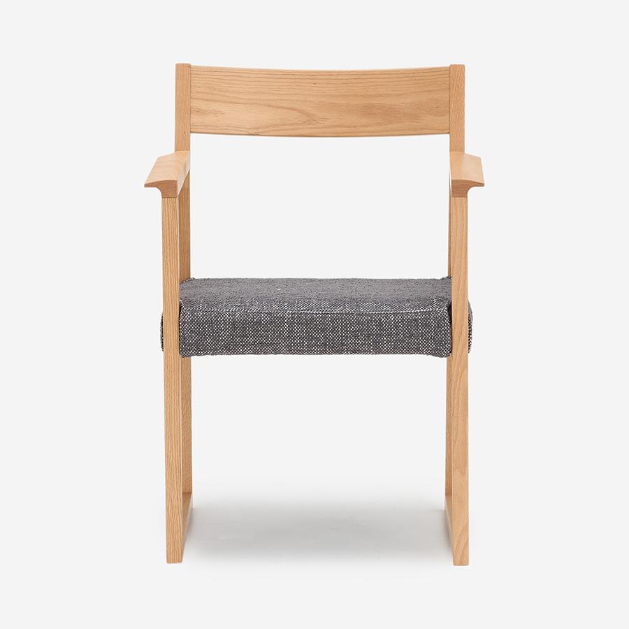 チェアは潔いほどにシンプルな直線で構成しながらも、思わず手を置きたくなる肘掛けの滑らかな曲線にこだわりました。身体に触れる部分は丁寧に削り込み、無垢材ならではの柔らかな感触をお楽しみいただけます。