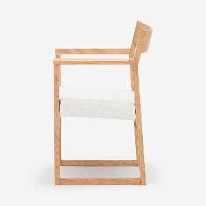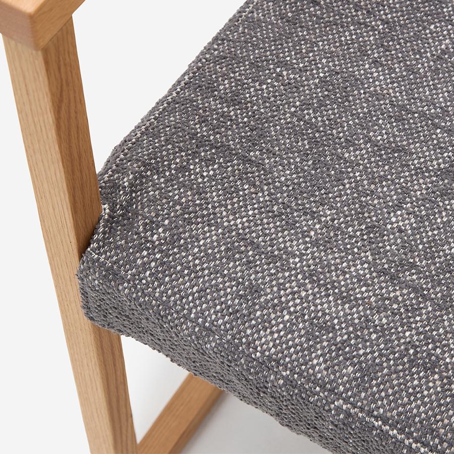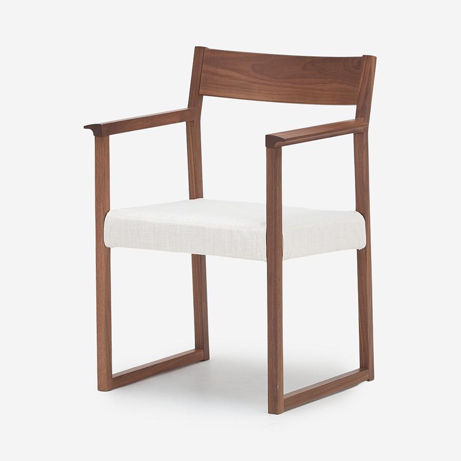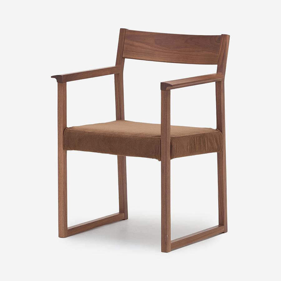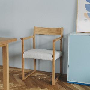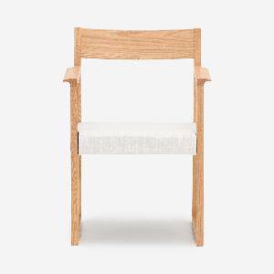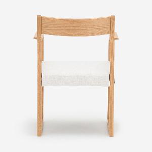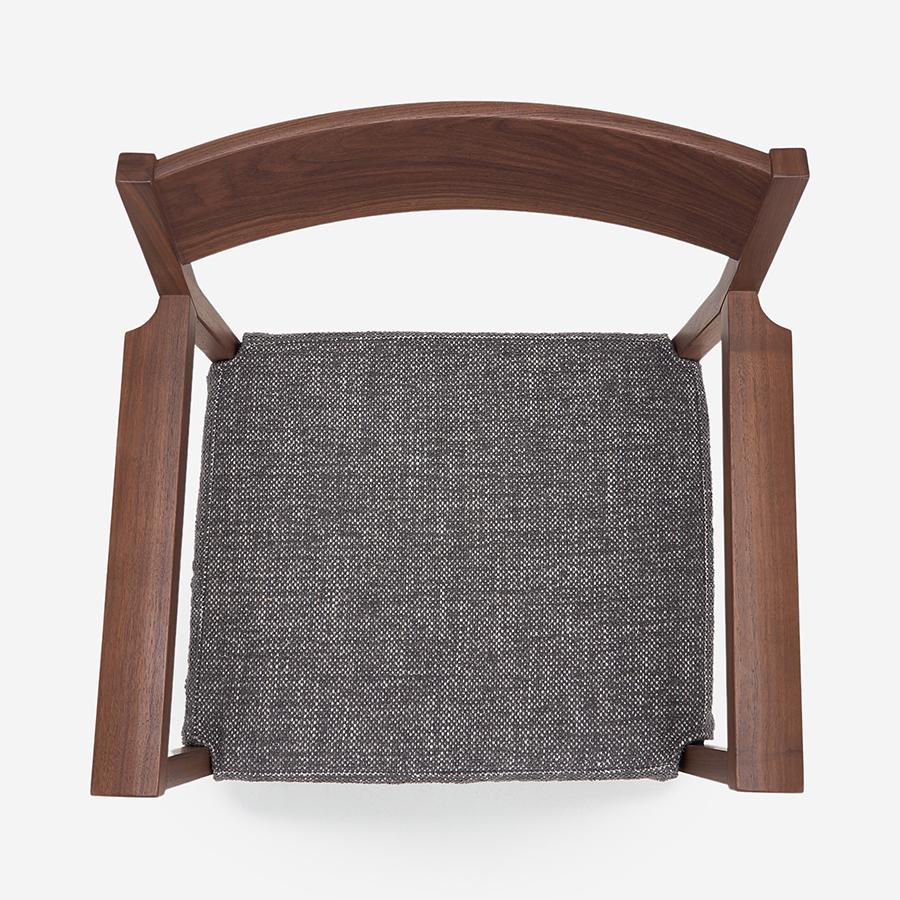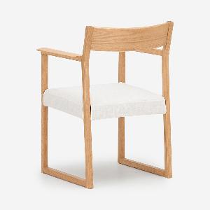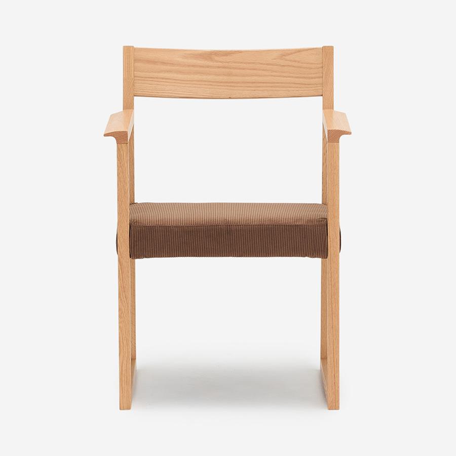 チェアは潔いほどにシンプルな直線で構成しながらも、思わず手を置きたくなる肘掛けの滑らかな曲線にこだわりました。身体に触れる部分は丁寧に削り込み、無垢材ならではの柔らかな感触をお楽しみいただけます。