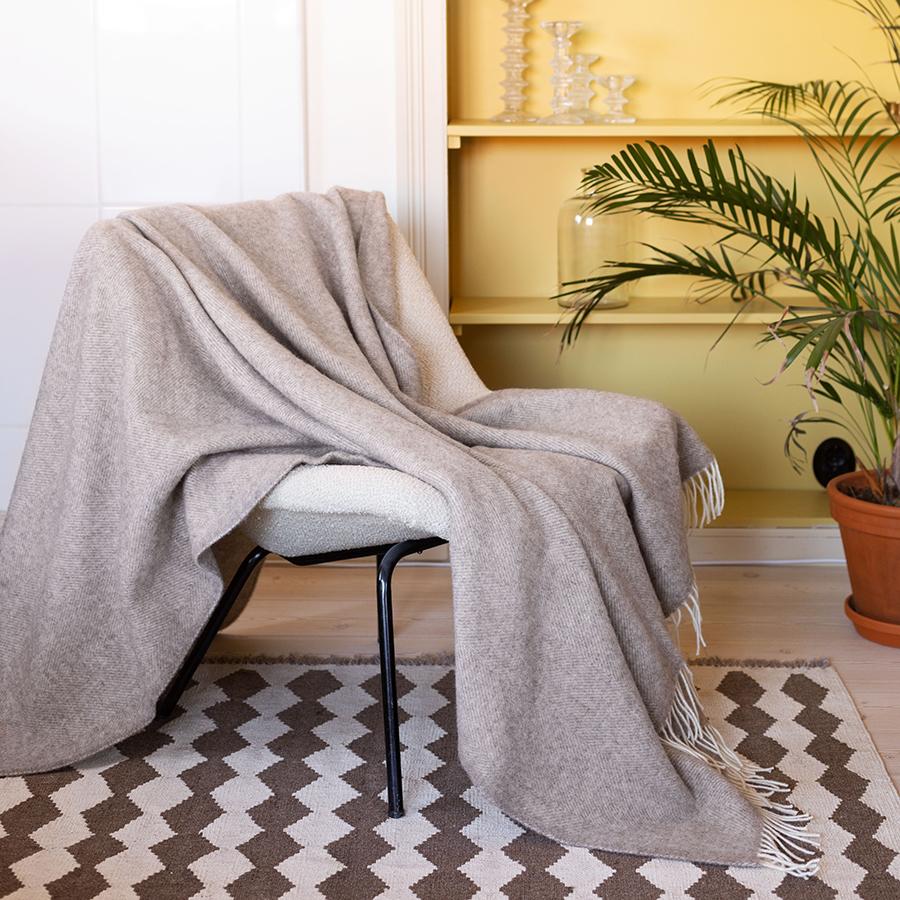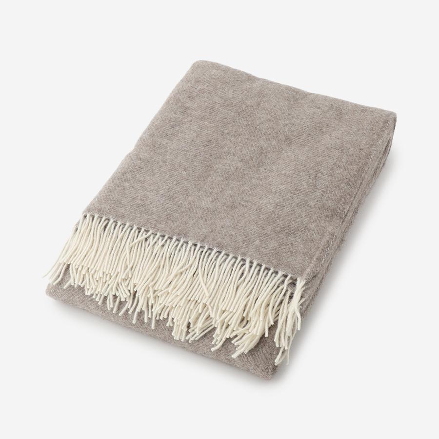 フィンシープウールを含んで織られた、とても柔らかく、贅沢でたっぷりとしたボリューム感が特徴のブランケット。