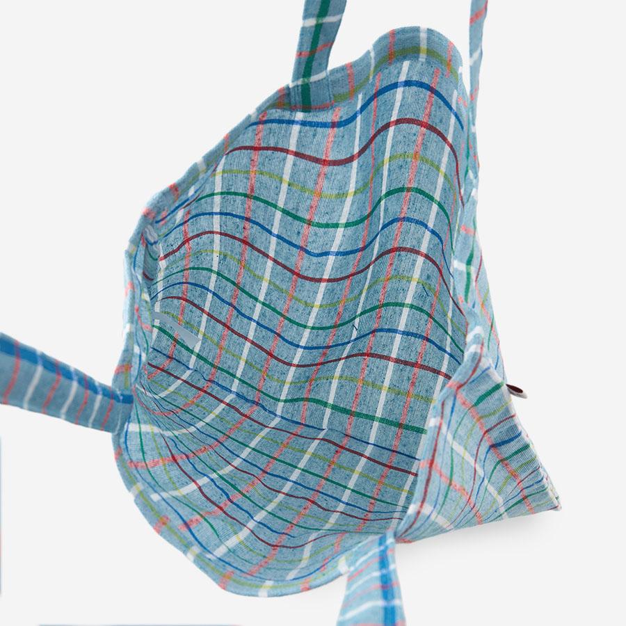 そんな現地の暮らしに触れた作り手が、パン包み布に使われている「ありそうでないチェック柄」や「少し懐かしさを感じる模様」の愛らしさに惹かれ、デイリーに使いやすいトートバッグの形に仕立てたのがはじまりです。