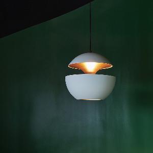 HERE COMES THE SUN(ヒア・カムズ・ザ・サン)は、フランスの著名な建築家ベルトラン・バラスが1970年に発表しました。魔法のような幻想的な光を放つアルミ製の球形のシェードは、見る人の気分によって日の出や日中の太陽、さらには、月の光のようにも感じられます。現在でもフランスの多くの人々に愛されているペンダントランプです。