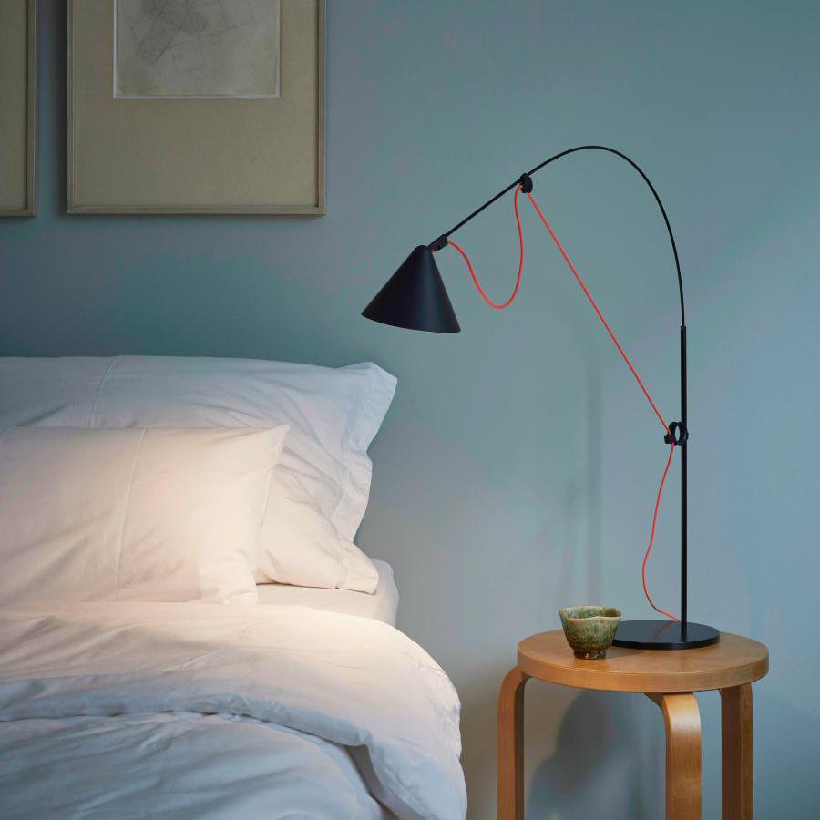 細く繊細なフォルムの支柱は柔軟で頑丈なグラスファイバー製で、可動式の調整リングをスライドさせることでロッドのしなりとケーブルのテンションを利用して調整が可能になり、ヘッドは回転式になるため稼働可能な範囲内で必要な場所に必要な光をお届けすることができます。梱包材についてもフラットパックにするなど、環境に配慮したサスティナビリティの高い点もこの製品の魅力の一つです。