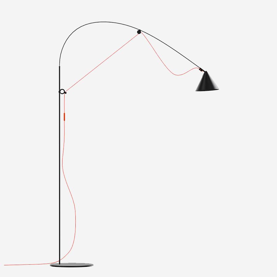 細く繊細なフォルムの支柱は柔軟で頑丈なグラスファイバー製で、可動式の調整リングをスライドさせることでロッドのしなりとケーブルのテンションを利用して調整が可能になり、ヘッドは回転式になるため稼働可能な範囲内で必要な場所に必要な光をお届けすることができます。梱包材についてもフラットパックにするなど、環境に配慮したサスティナビリティの高い点もこの製品の魅力の一つです。