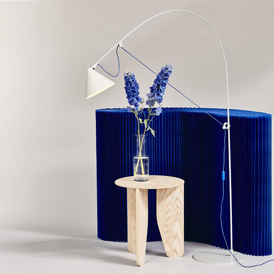 細く繊細なフォルムの支柱は柔軟で頑丈なグラスファイバー製で、可動式の調整リングをスライドさせることでロッドのしなりとケーブルのテンションを利用して調整が可能になり、ヘッドは回転式になるため稼働可能な範囲内で必要な場所に必要な光をお届けすることができます。梱包材についてもフラットパックにするなど、環境に配慮したサスティナビリティの高い点もこの製品の魅力の一つです。