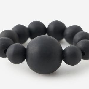 サイズの異なるレジンボールの連なりが目を惹くデザインで、モダンかつ可愛らしい独特の風合いを生み出しています。