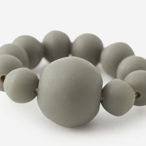 サイズの異なるレジンボールの連なりが目を惹くデザインで、モダンかつ可愛らしい独特の風合いを生み出しています。