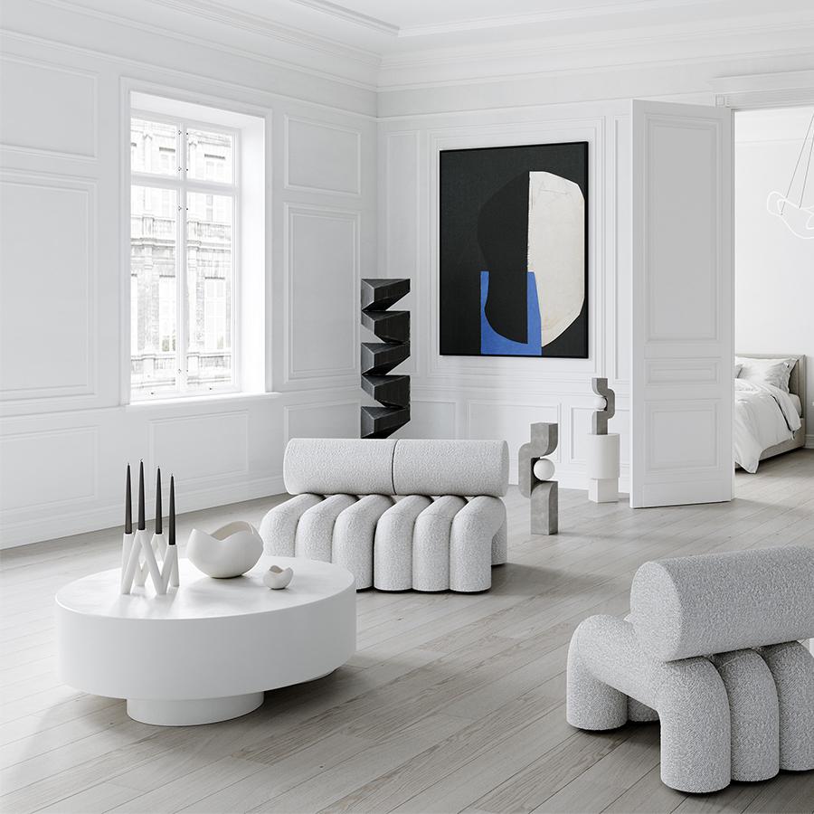 最大の特徴は、意図的に不均一に作られたシェイプと表面のテクスチャーです。 自然素材である粘土(クレイ)が持つ素朴な質感を強調し、ハンドメイドならではの温かみと、彫刻のような静けさを空間にもたらします。