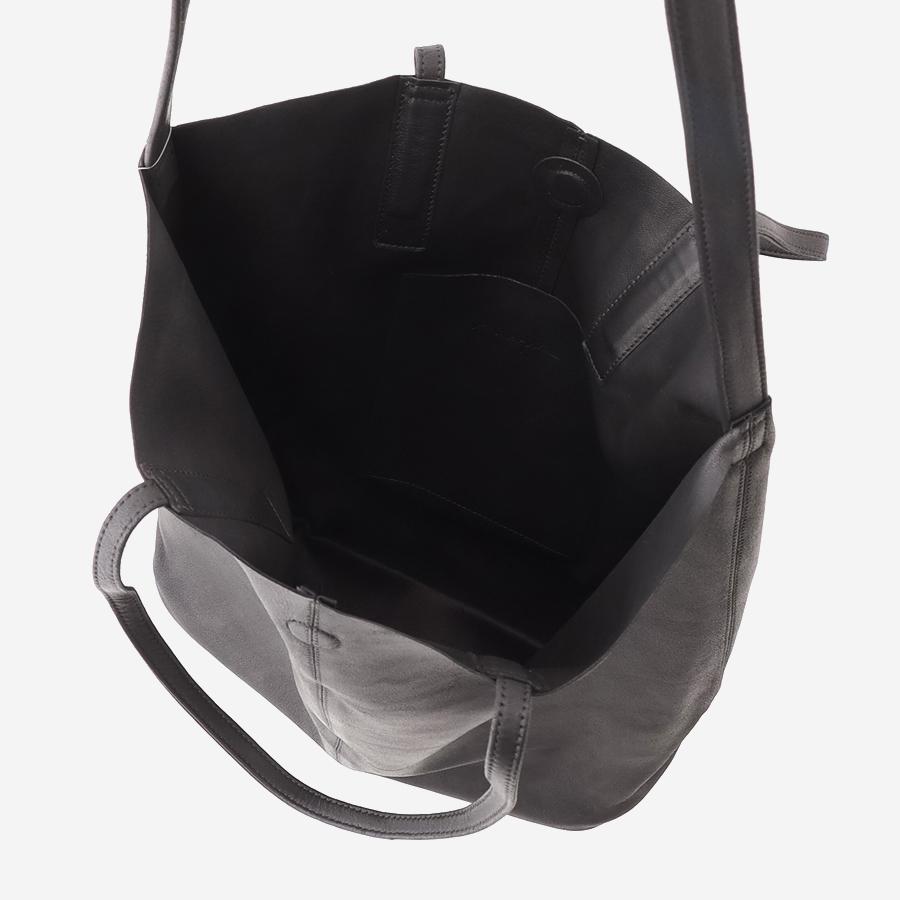可能な限り無駄なデザインを削ぎ落とし、あえてショルダー紐のアジャスターや金属類を極力使用しないことで、ブランド特有のミニマルで洗練されたムードを生み出しています。