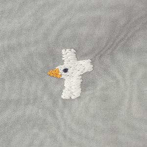 中央に刺繍された愛らしい「鳥さん」のワンポイントが、シンプルさの中に優しさを添えています。