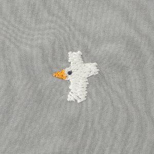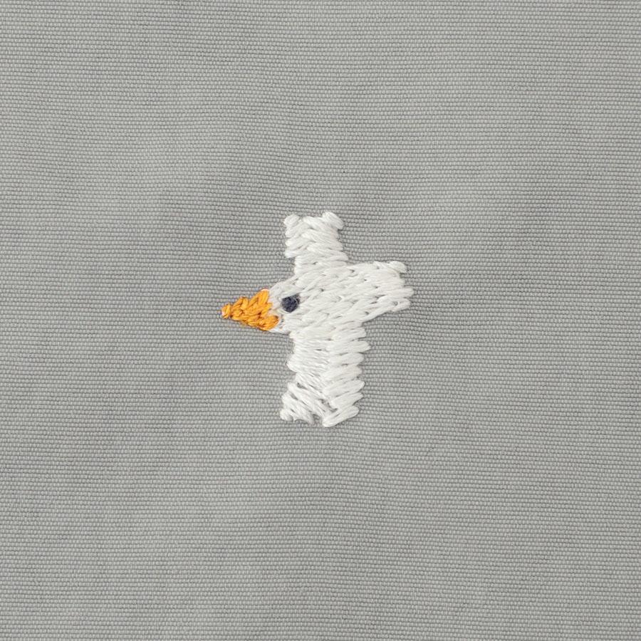 落ち着いたグレーのベースカラーに、愛らしい「鳥さん」の刺繍がワンポイント。