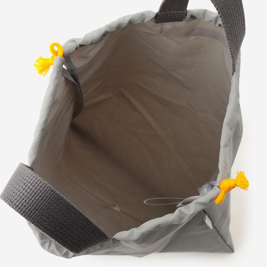 紐をキュッと絞ればコロンとした愛らしい「巾着」に。