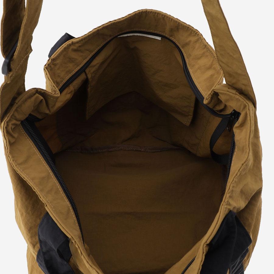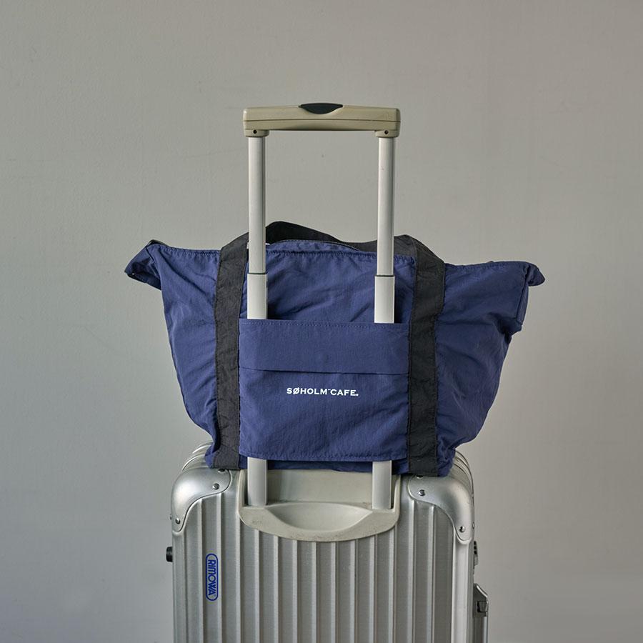 ボディを折りたたんで外側ポケットに折りかえし収納することでコンパクトなサイズにもなるため旅のサブバッグにも。