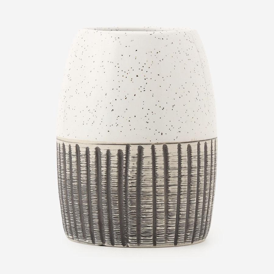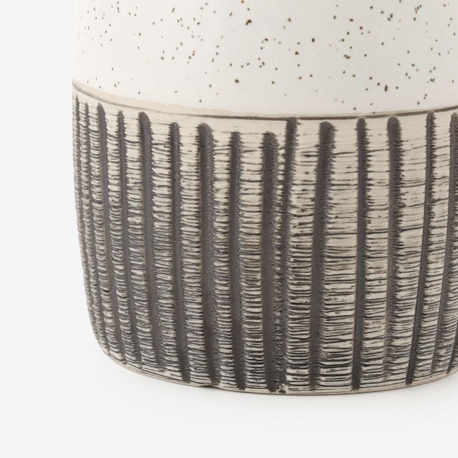 上部は細かな斑点が入ったニュアンスのある色味、下部は縦の削りだしたラインが特徴的なデザインです。